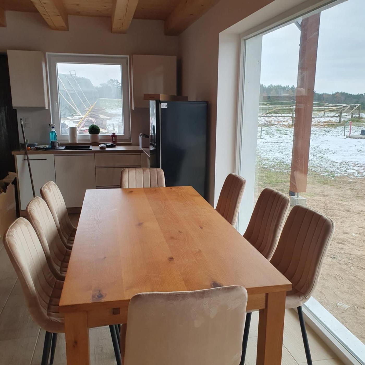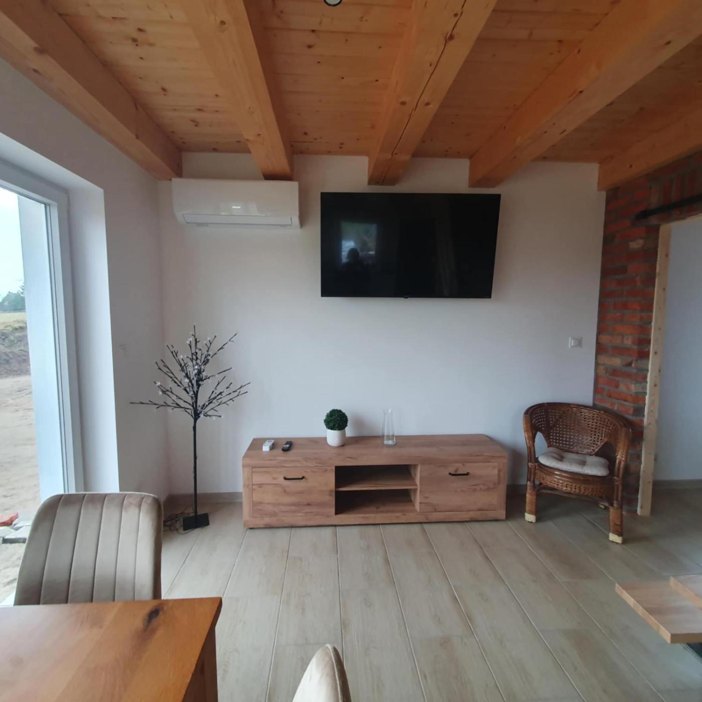 Dom z 3 sypialniami. The hot tub and fireplace are the special features of this holiday home. Guests will find a stovetop, a refrigerator, a dishwasher and kitchenware in the well-fitted kitchen. The holiday home also includes a barbecue. The holiday home features air conditioning, a washing machine, a terrace with garden views as well as a shared bathroom boasting a shower. The unit has 5 beds. Dom wakacyjny - 7 osobowy. Powierzchnia pokoju ok.: 70 mkw.