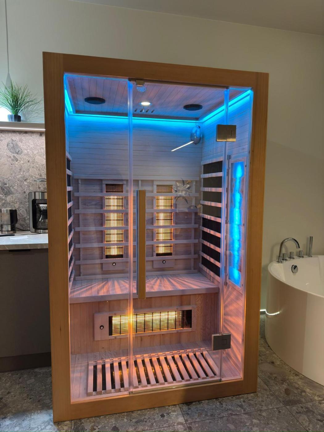 Apartament typu Suite z sauną. This suites standout feature is the sauna. The air-conditioned suite features 1 bedroom and 1 bathroom with a bath and a shower. The fully equipped kitchen has a stovetop, a refrigerator, kitchenware and an electric kettle. The suite offers a flat-screen TV, a dining area, a wardrobe, heating as well as city views. The unit offers 1 bed. Apartament typu Suite - 2 osobowy. Powierzchnia pokoju ok.: 28 mkw.