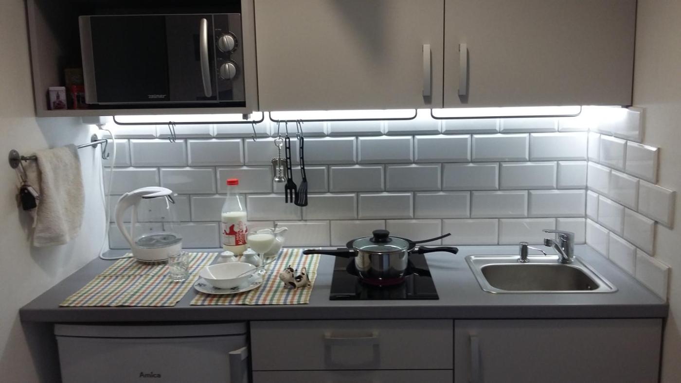 Apartament typu studio. This apartment is comprised of 1 bedroom, a kitchen and 1 bathroom with a walk-in shower and a hairdryer. In the fully equipped kitchen, guests will find a stovetop, a refrigerator, kitchenware and a microwave. This apartment features a tea and coffee maker, flat-screen TV, ancourtyard view, as well as chocolate for guests. The unit offers 2 beds. Apartament - 4 osobowy. Powierzchnia pokoju ok.: 16 mkw.