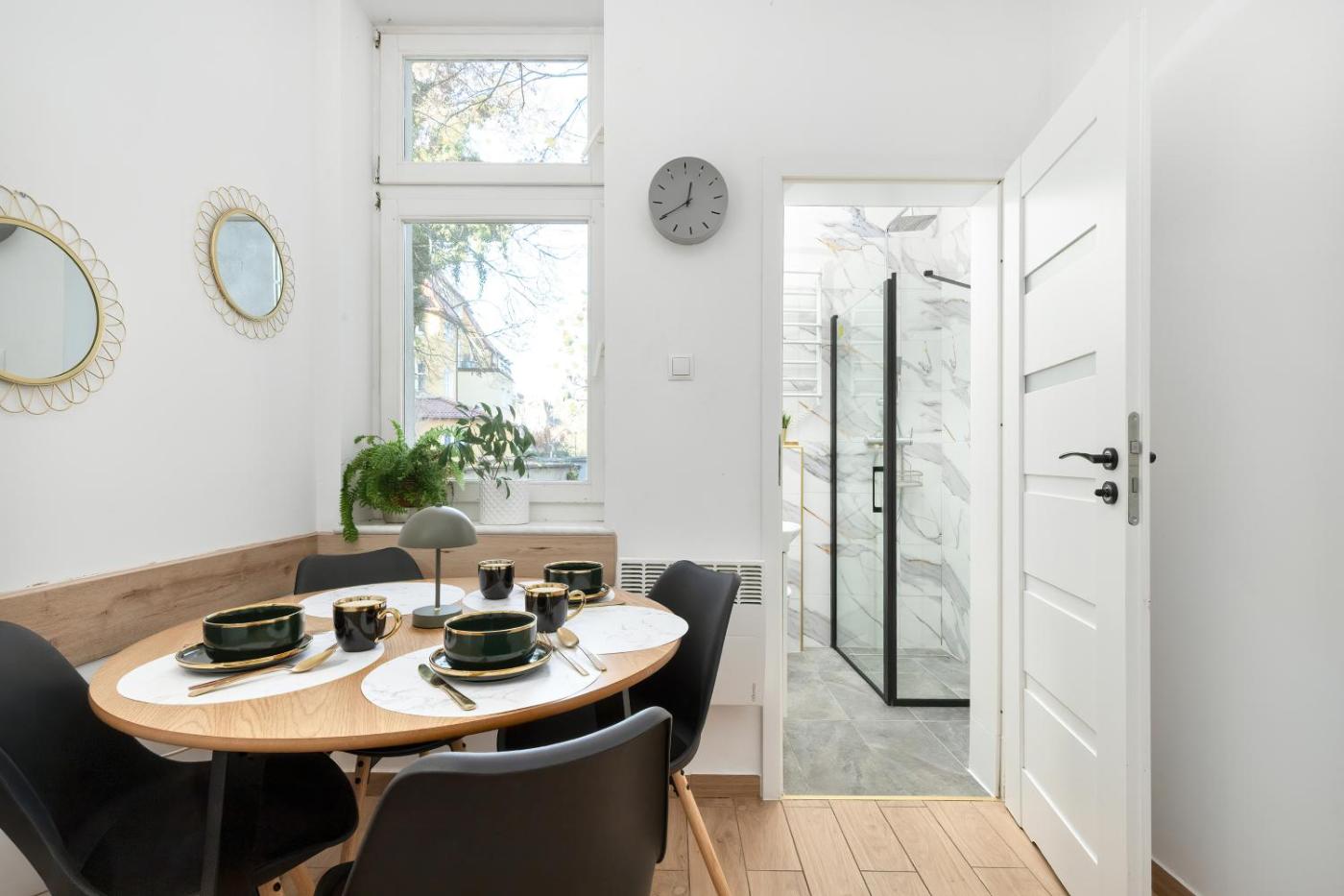 Apartament typu Standard. The apartment has 1 bedroom and 1 bathroom with a shower and free toiletries. In the kitchenette, guests will find a stovetop, a refrigerator, a dishwasher and kitchenware. The apartment features a flat-screen TV with cable channels, a washing machine, a tea and coffee maker, a seating area as well as city views. The unit has 1 bed. Apartament - 2 osobowy. Powierzchnia pokoju ok.: 26 mkw.