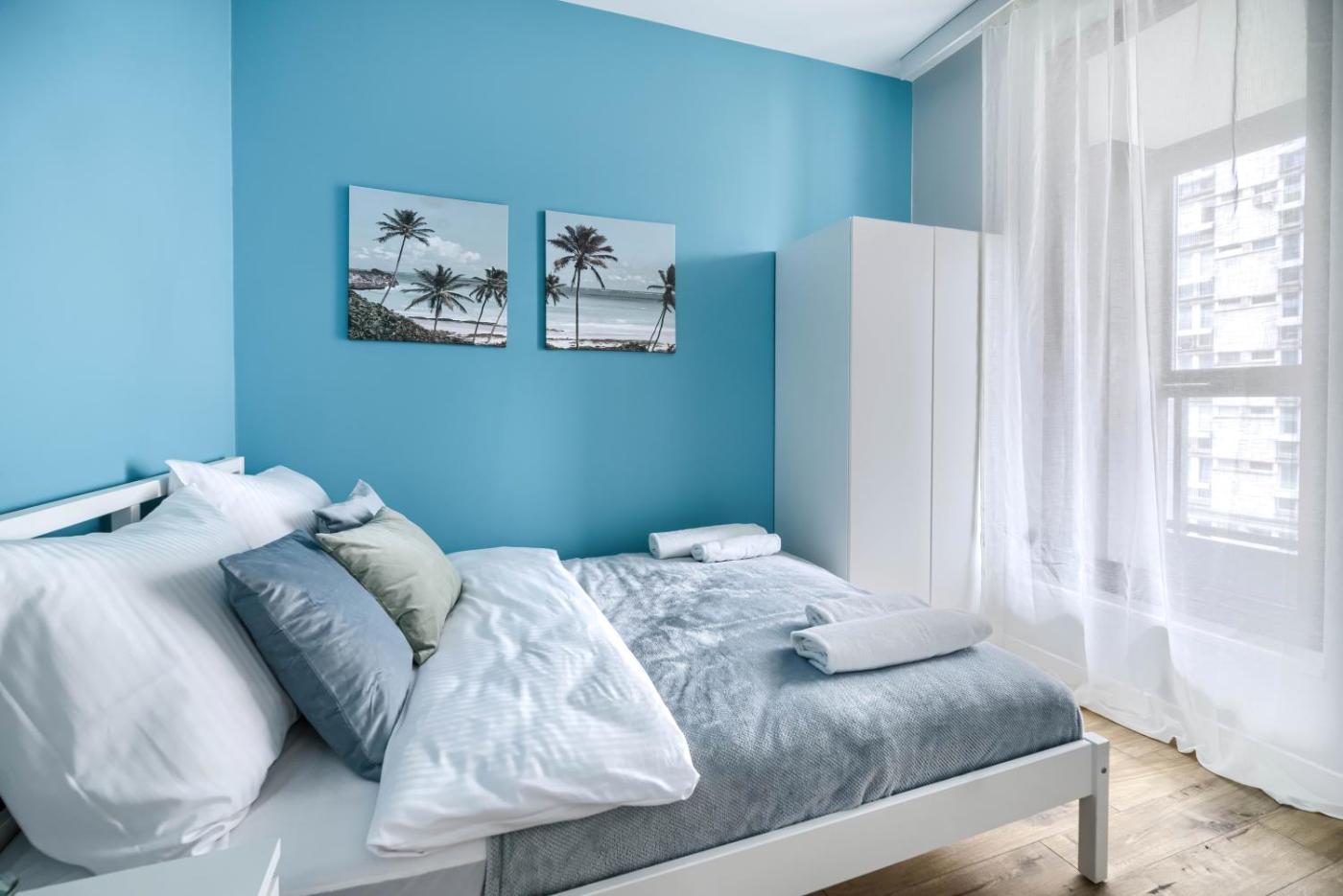 Apartament z 1 sypialnią. Jest to apartament z prywatnym wejściem, który mieści salon, oddzielną sypialnię oraz łazienkę z prysznicem i suszarką do włosów. We w pełni wyposażonej kuchni przygotowano płytę kuchenną, lodów, i zmywarkę do naczyń i przybory kuchenne. Udogodnienia w tym apartamencie z widokiem na miasto obejmują pralkę oraz telewizor z płaskim ekranem i dostępem do serwisów streamingowych. Dla gości przygotowano wino lub szampana. Do dyspozycji gości są 2 łóżka. Apartament - 4 osobowy. Powierzchnia pokoju ok.: 35 mkw. ;